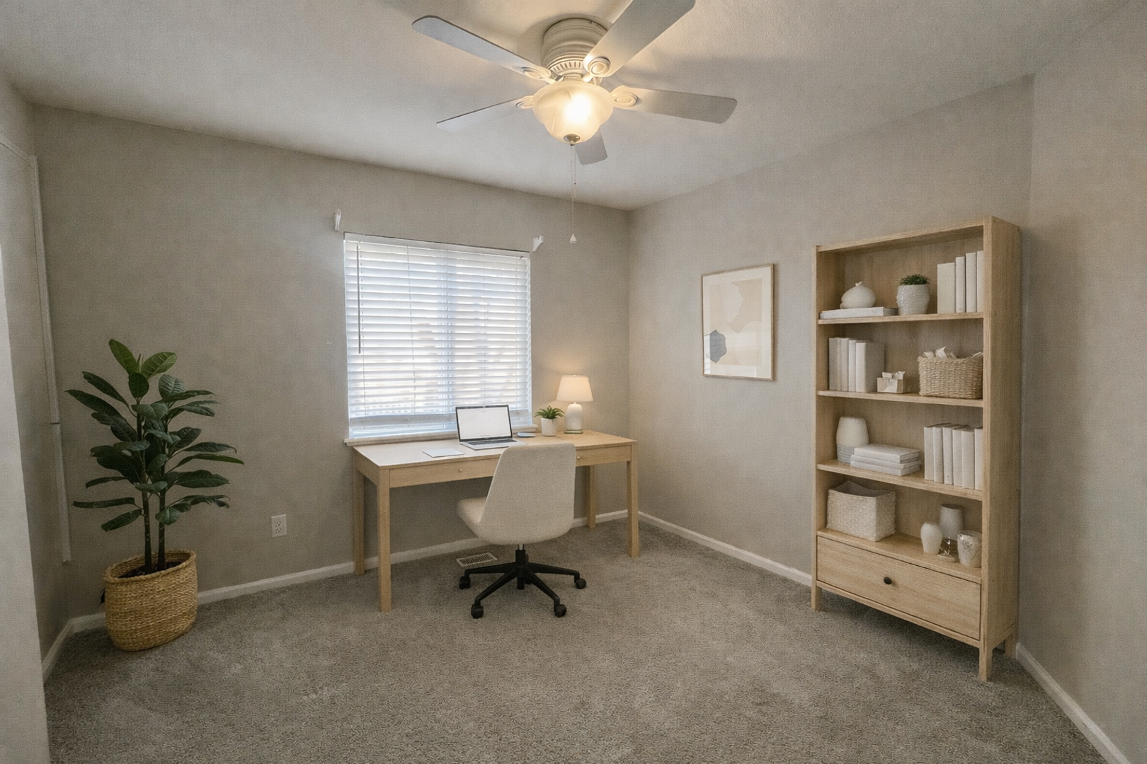 Spacious living room has vaulted ceilings and is wired for surround sound. Open kitchen has a pantry and counter bar, plenty of cabinet space, and includes all major appliances! Adjacent dining area walks out to the large custom wood deck and has a fenced backyard with auto sprinkler system. Master suite has a private bath and walk-in closet. Office has french doors and could be used as an additional bedroom! Laundry room includes washer/dryer. Central Air! Close to schools, shopping, entertainment, and bases!