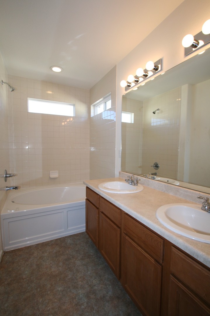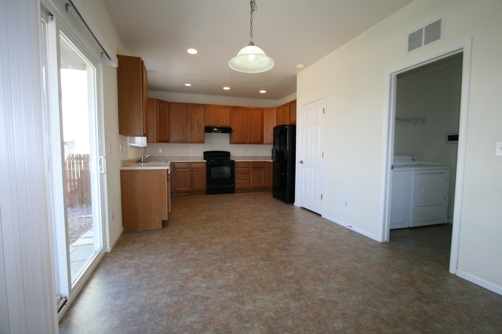 Eat-in kitchen features 42" oak cabinets, pantry and walk-out to backyard! Backyard is fully fenced with covered back patio. The formal living room and family room share a dual sided gas fireplace for those chilly winter nights. Spacious unfinished basement provides plenty of storage space. Laundry room includes provided washer and dryer! Upper level includes 3 bedrooms and master bedroom with walk-in closet, adjoining full bathroom and oval soaking tub. Within short walk or bike ride to brewery and other businesses in Meridian Ranch! Tenant responsible for Mandatory WH Metro bill. This covers water, wastewater, parks, access to 2 rec centers, and street lights. Average baseline cost is $275 per month