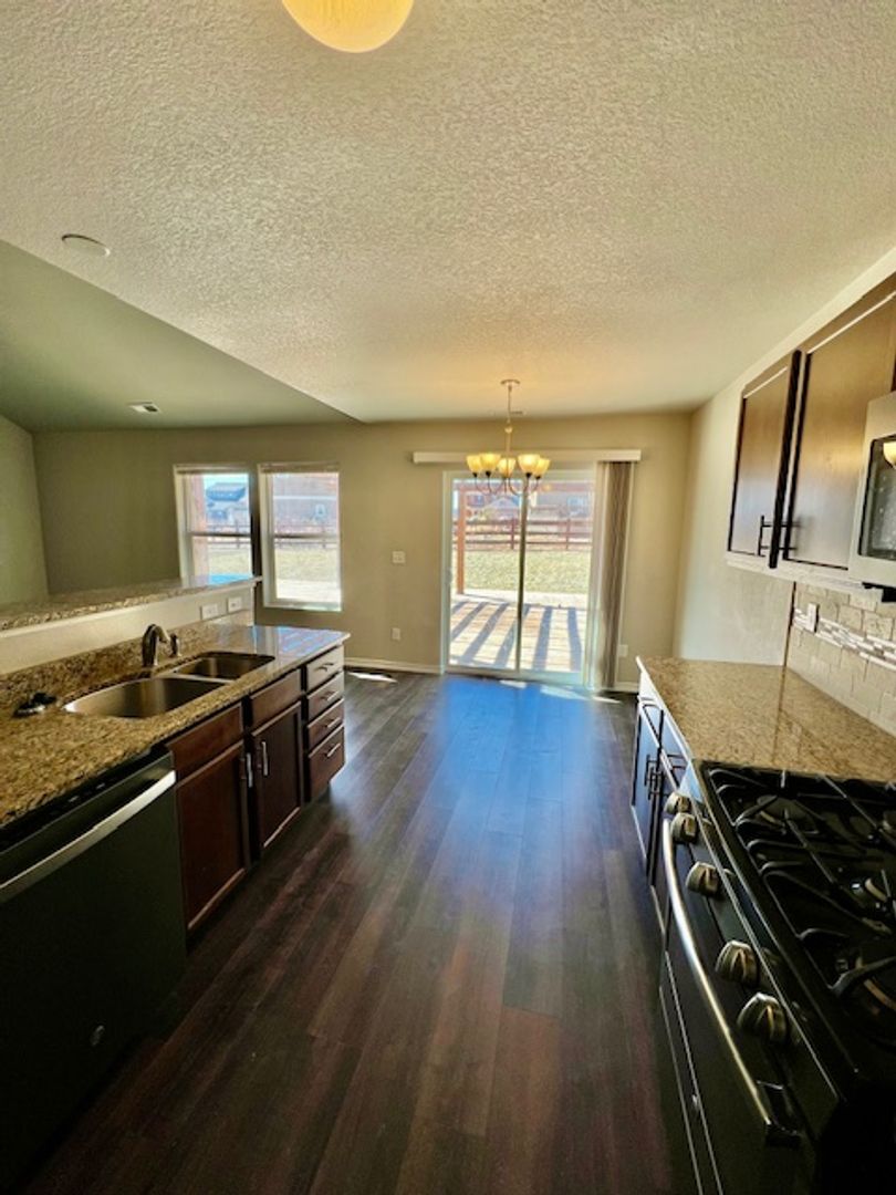 Open concept main level floorplan with laminate wood floors throughout the property! Large living room features soaring ceilings, and dining area walks out to extra large wood deck and pergola! Large backyard includes split rail fencing and storage shed! Kitchen features granite countertops, complementary backsplash, stainless steel appliances and pantry in laundry room! Provided washer and dryer! All 3 bedrooms are located on the main level of the home, master suite includes walk in closet and attached 5 piece bath! Additional property amenities include attached 2 car garage, no HOA, RV parking, and central air! Located close to schools, parks, hiking/biking trails and more! Schedule a time to view this one before it's gone!