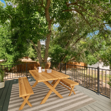 New carpet, new paint, and two brand new gorgeous decks on this home close to UCCS! This property features a covered front porch, hardwood flooring throughout main level and living room with wood burning fireplace! Galley kitchen with oak cabinets, pantry and major appliances provided! Dining area walks out to deck with great views of Palmer Park. Dining area walks out to Julie balcony. Spacious fenced backyard includes storage shed! Upper level with full bathroom, secondary bedrooms and master bedroom with walk-in closet. Rec room, 3/4 bathroom and provided washer/dryer in basement. Additional amenities include sprinkler system and A/C. Close to entertainment, shopping and more! *Photos have been virtually staged*