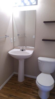This 2 story home features engineered wood flooring! Formal living room includes under stairs storage. Kitchen has laminate wood flooring, all major appliances provided and walks out to fenced backyard. Secondary bedrooms and master bedroom with walk-in closet and access to full bathroom on upper level. Provided stackable washer and dryer! Security system available with tenant paid subscription. Close to schools, shopping and more!
