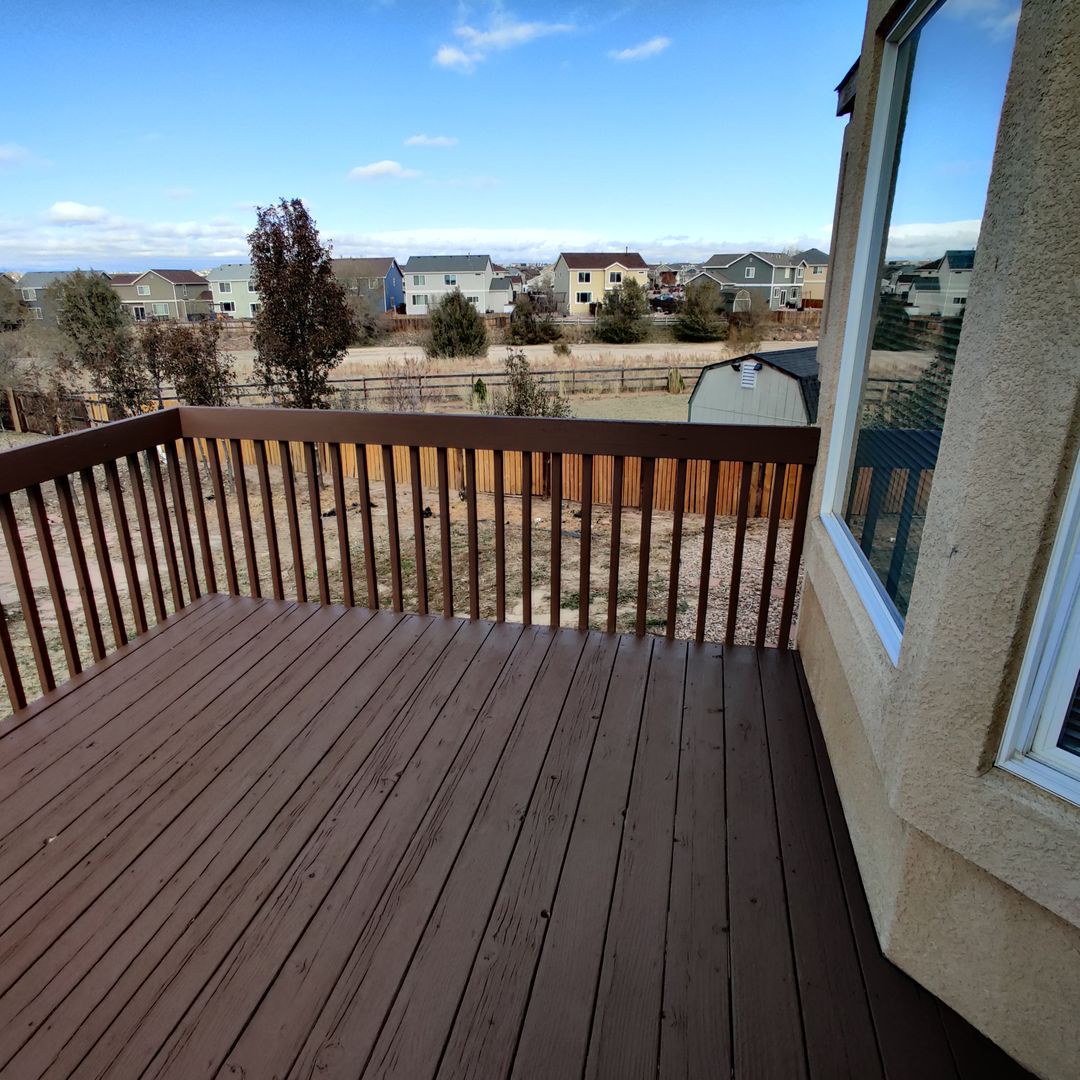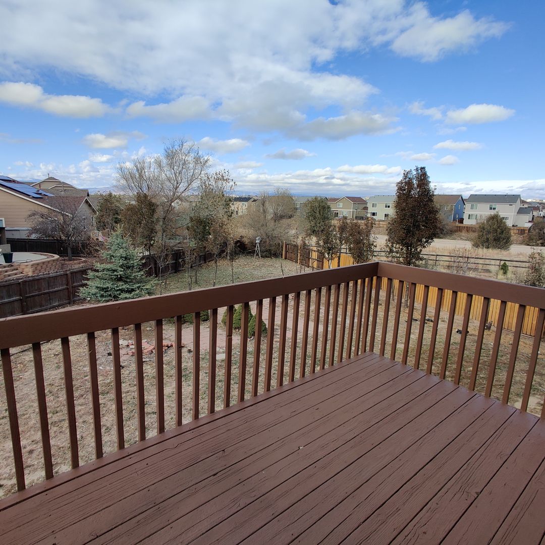 This stucco home sits in a cul-de-sac and has a walk-out basement and 2 car garage. Open floor plan with a great master bedroom with walk in closet and 5 piece master bath. Family room has gas fireplace. Beautiful bay window in dining area and kitchen includes major appliances and has a wonderful pantry and island. Laundry area and washer/dryer hookups on main level. Large lot that is beautifully landscaped and fenced in backyard! Near Peterson AFB!